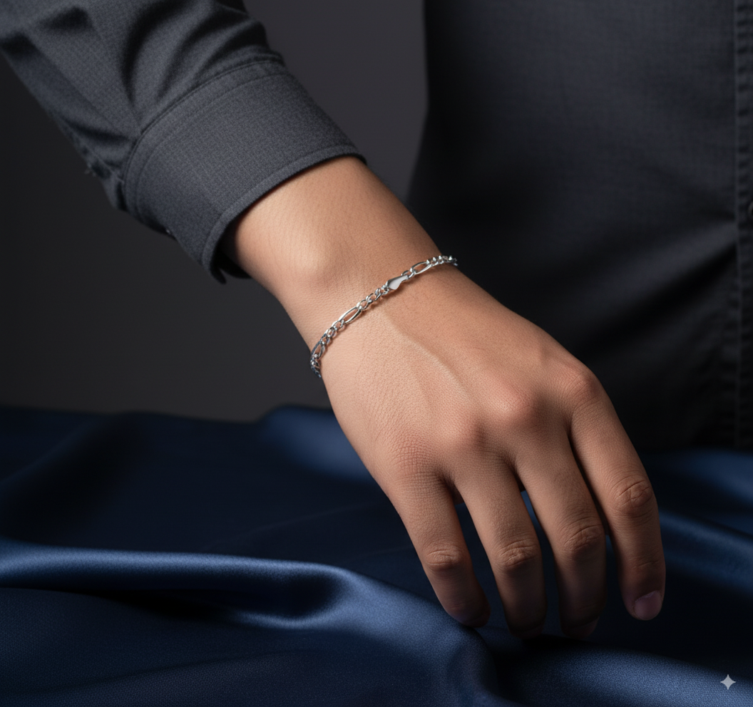 Designed with a sleek Figaro-style chain, Rajat Sutra flows with sophistication while retaining the boldness every man deserves. It is more than jewelry — it is a mark of status, a celebration of heritage, and a daily reminder of the strength that endures through generations.